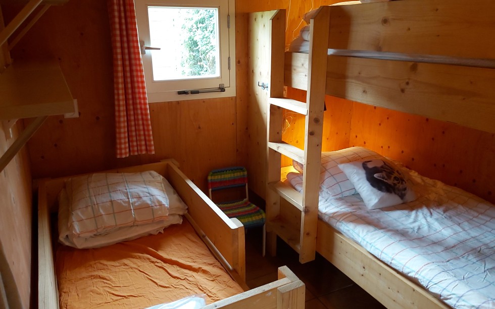 - 1 slaapvertrek met stapelbed en beddengoed verder is een derde bed van 1m50 aanwezig